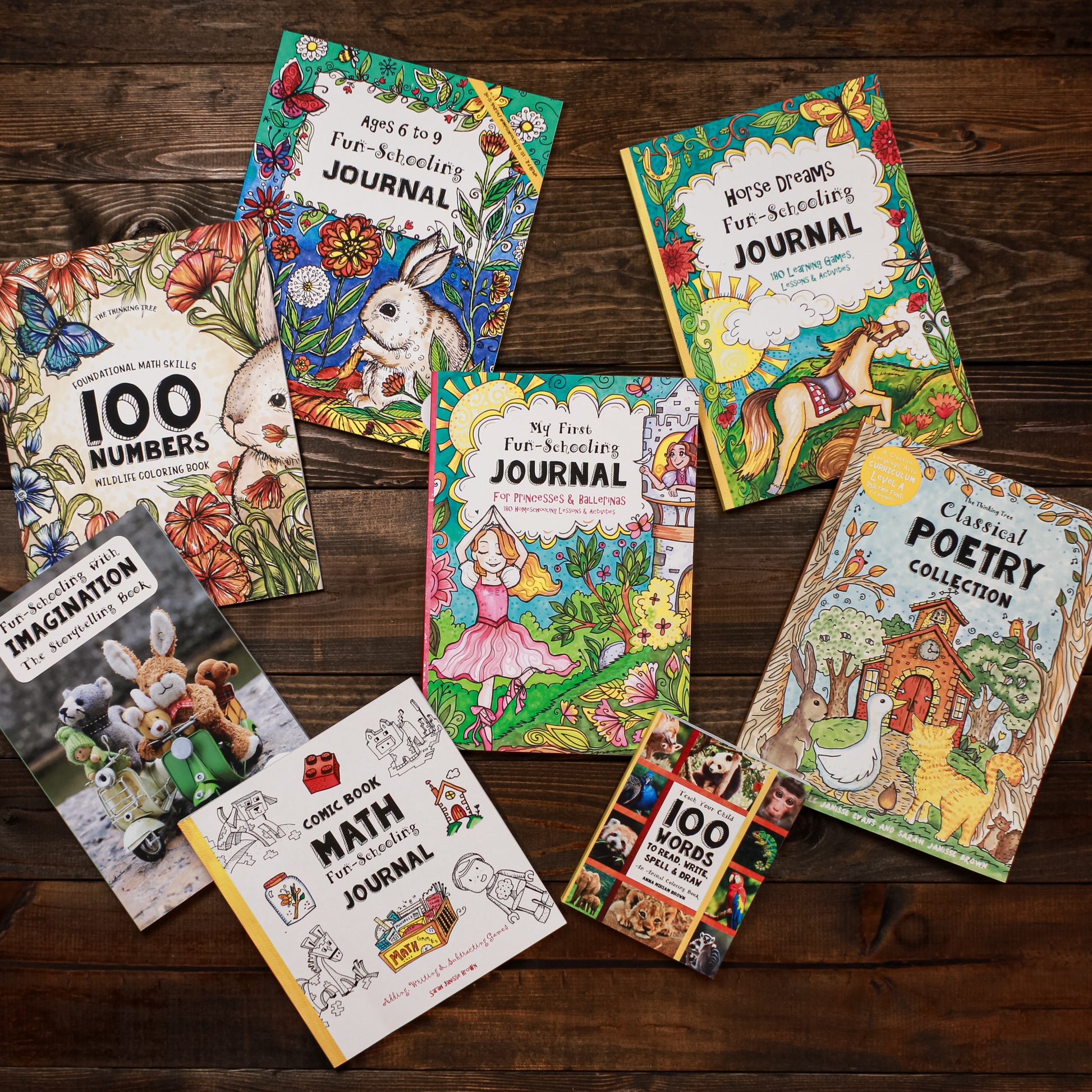 - Fun-Schooling with Imagination: Full-color storytelling journal with whimsical photos that spark narration and creative writing.
